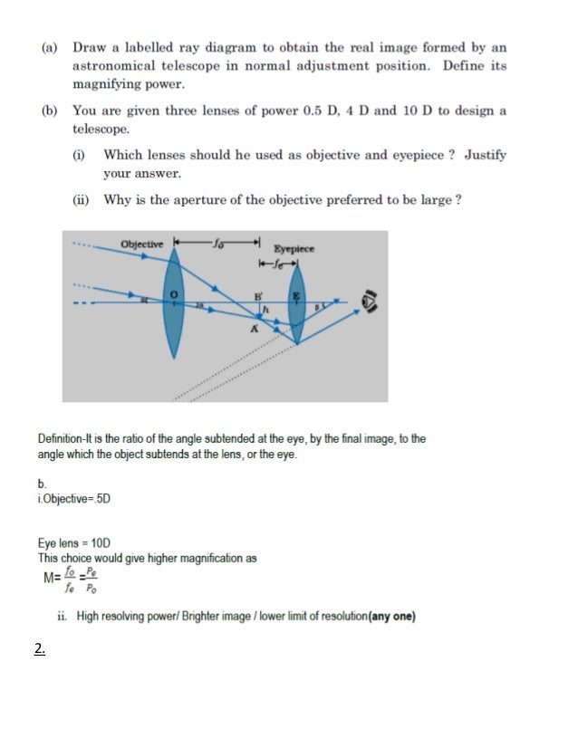 The convex lens is thicker in the middle and thinner at the edges and is also known as the converging lens. The refracted rays from the parallel beam of light converge on the other side of the convex lens. If the image is obtained at the focus of the lens, the image would be real, inverted and very small. Oct 31, 2017 · Draw a ray diagram of the lens system you set up in c6. A ray from the top of the object proceeding parallel to the centerline perpendicular to the lens. The method of drawing ray diagrams for double convex lens is described below. The ray diagram above illustrates that the image of an object in front of a double concave lens will be located at a position behind the double concave lens. Jan 27, · When you look up a ray diagram for a telescope you get the following: From reading my book it seems clear that the objective lens forms and image on the focal plane. This then serves as an image for the eyepiece. Since the focal length of the eyepiece at the focal length of the objective lens you get a virtual image at infinity. This physics video tutorial focuses on a multiple two lens system that contains a diverging lens and a converging lens. It provides the thin lens equation n...