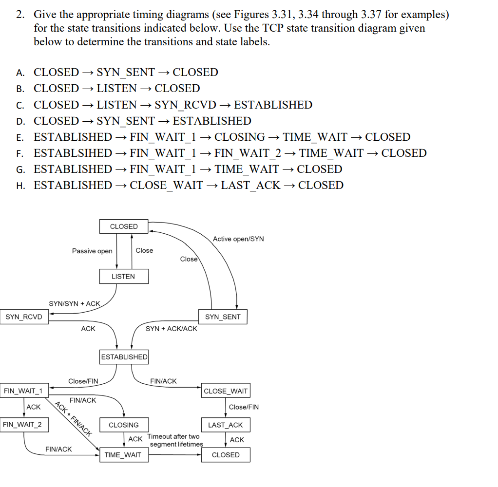 State transition diagram for TCP connection establishment The TCP connection establishment protocol can be described using a state transition diagram as follows: Explanation of the states: CLOSED = initial state. The client has no TCP connection. The server is ...