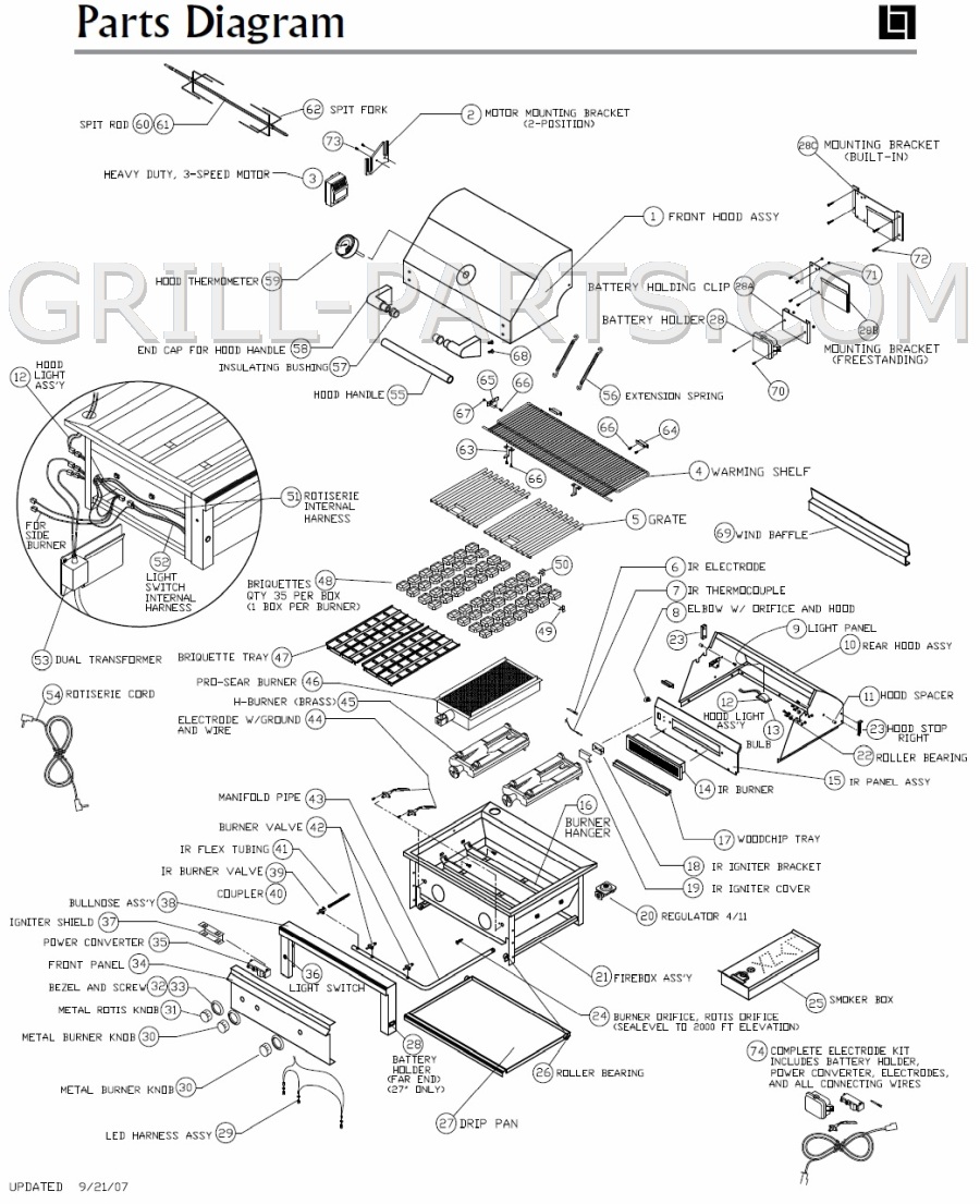 This is best done with the old parts out of the grill. Verify your Lynx model number. Part diagrams and owners manuals for Lynx model: L30FR. Click small image to enlarge. Click Large image to reduce. Double click for new window. Replacement grill parts for Lynx model: L30FR .