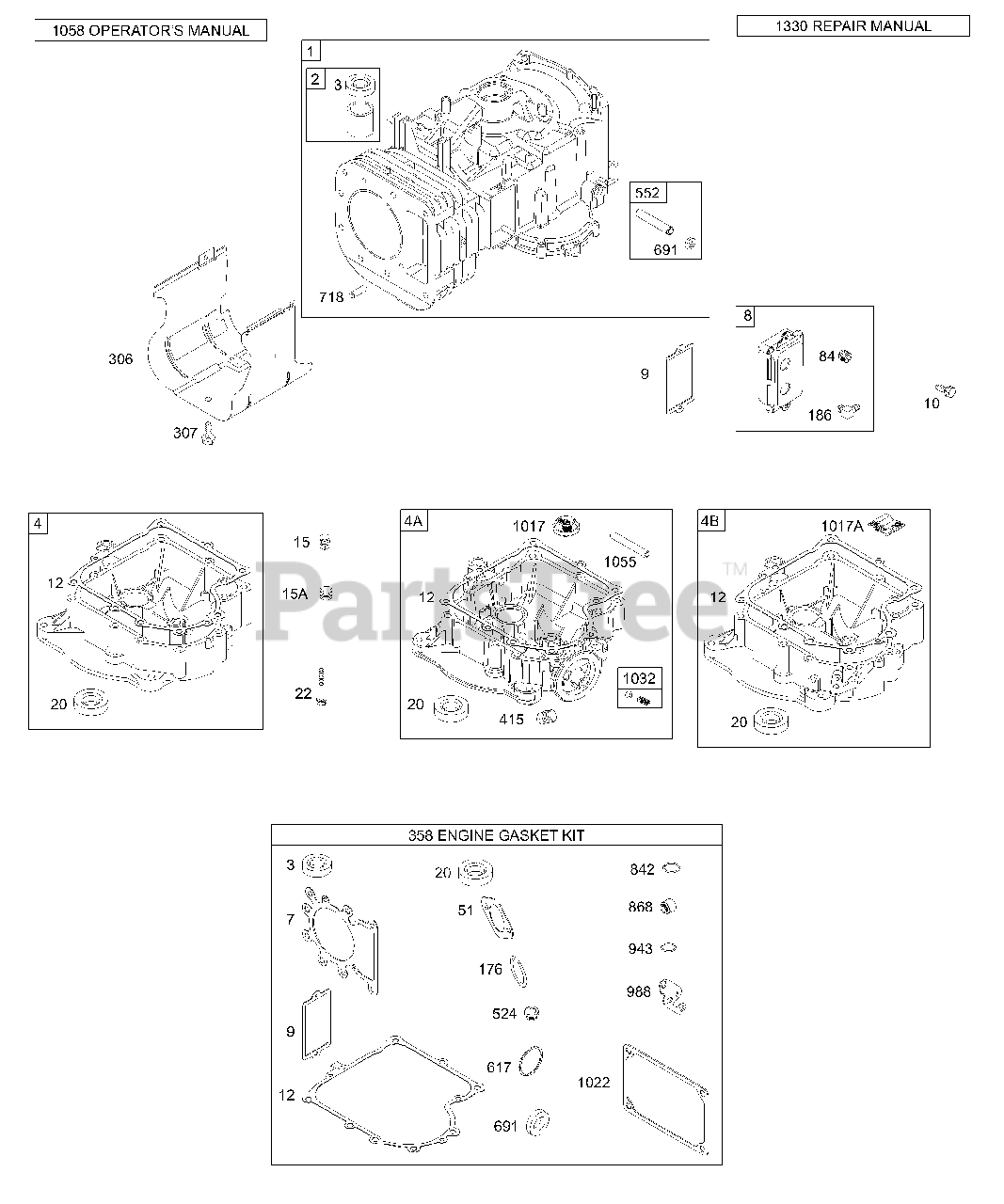 Parts for Briggs & Stratton 311777-0143-E1: Cylinder, Sump, Gasket Set Parts in stock and ready to ship today. 365 days to return any part.