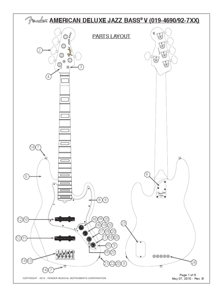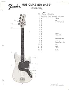 Mightymite Bass Bridge - 6-String Chrome: 02. 250k Dime Size Control Pot: 03. P-Bass® Split Pickup: 04. Bridge Pin Set With End Pin - Black w/ White Dot: 05. Metal Pickup Mounting Rings - Black: 06. Metal Pickup Mounting Rings - Chrome: 07. Metal Round Control Knobs 2pk - Chrome: 08. 1/4" Chrome Mono Output Jack: 09. Assorted String Nuts ... In this article, we will go over the different parts of the bass guitar and their different functions. Head And Tuning Pegs. Let’s start from the top and move our way down. First off is the headstock. The head stock is designed to space your strings out and, with the help of the tuners (which is the next part), keep your guitar in tune. Reverb is a marketplace bringing together a wide-spanning community to buy, sell, and discuss all things music gear. A detailed look at an early 1970s Fender Precision bass guitar in custom black finish, with rosewood fretboard. 1972 list price, $307.50. The Fender Precision had been shipping since at least very early 1952 - with just one re-design circa 1957. This example, then, shows a model already two decades old, but barely changed since the '57 revamp.