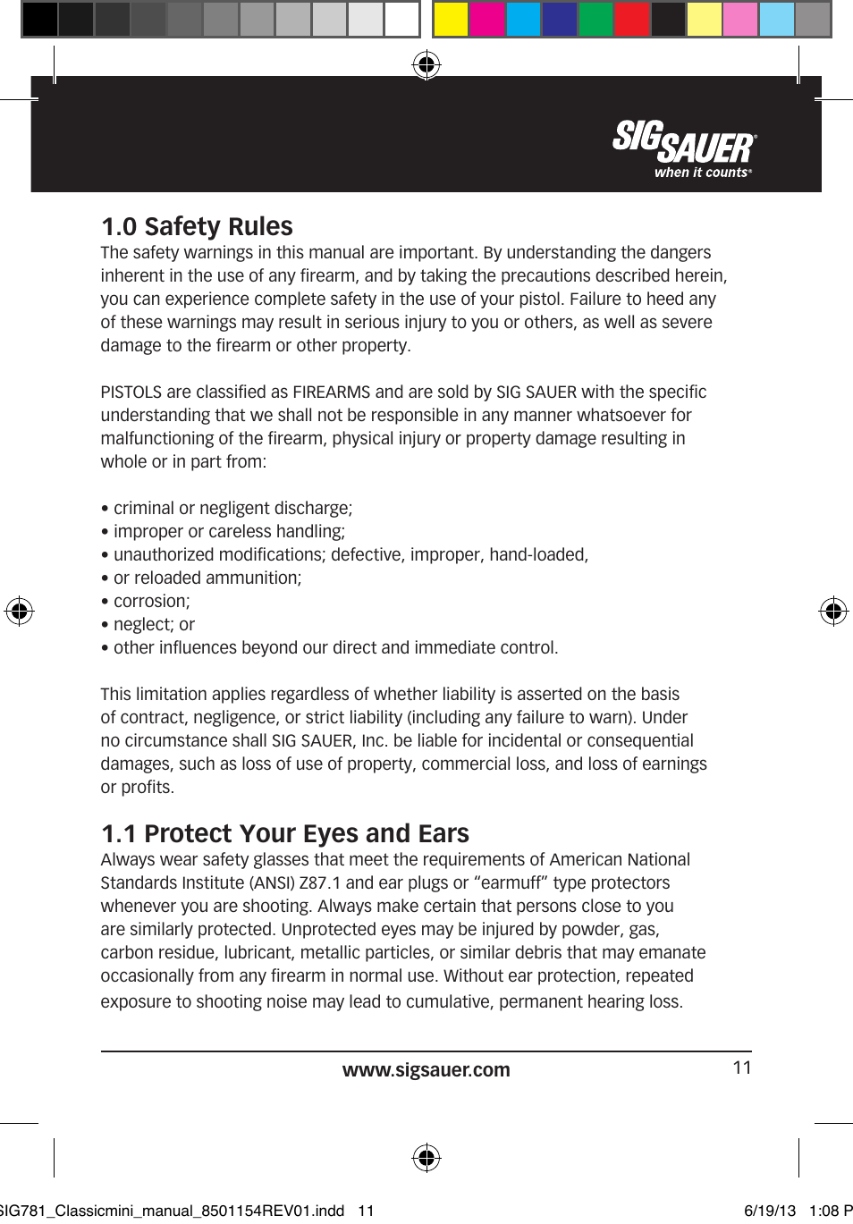 User manual | SIG P 229. Table of contents. 1 General instructions. This applies in particular to liability for bodily harm or damage to property resulting in part or in whole to: - use with criminal intent or negligent use