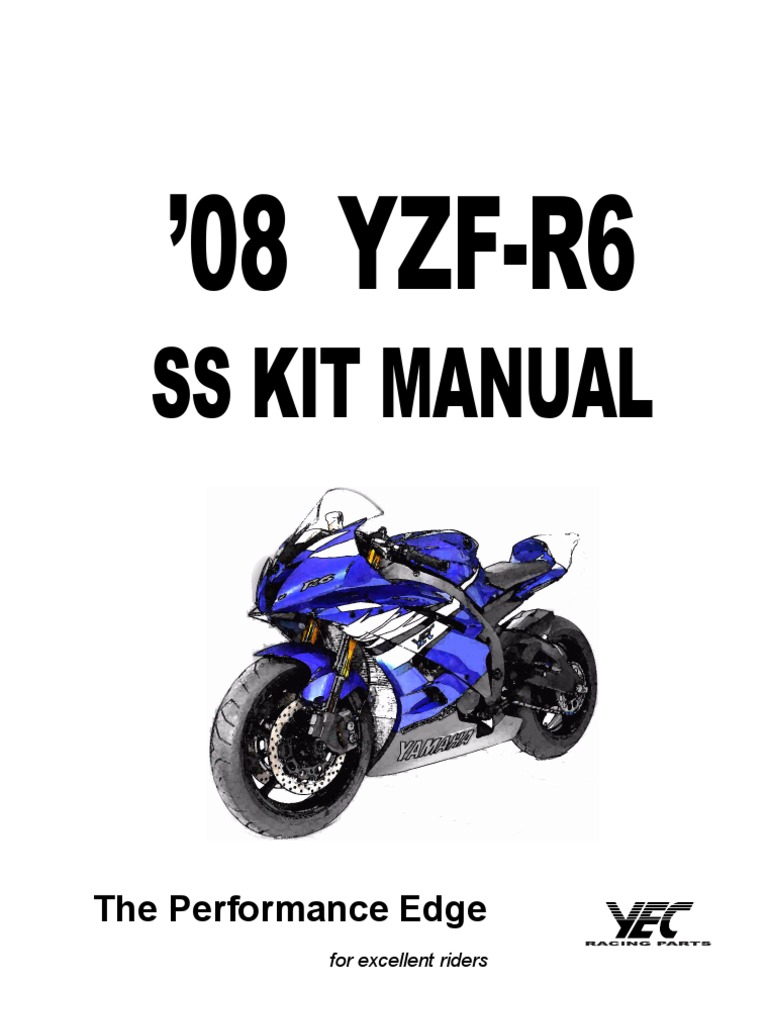 2003 YZF-R6 Kit Manual •Please understand that these parts are not covered by the warranty. •The manufacturer does not take any responsibility for problems caused by these parts. •These kit parts are intended exclusively for racing purposes. You are strictly requested not to use them for use on public roads.