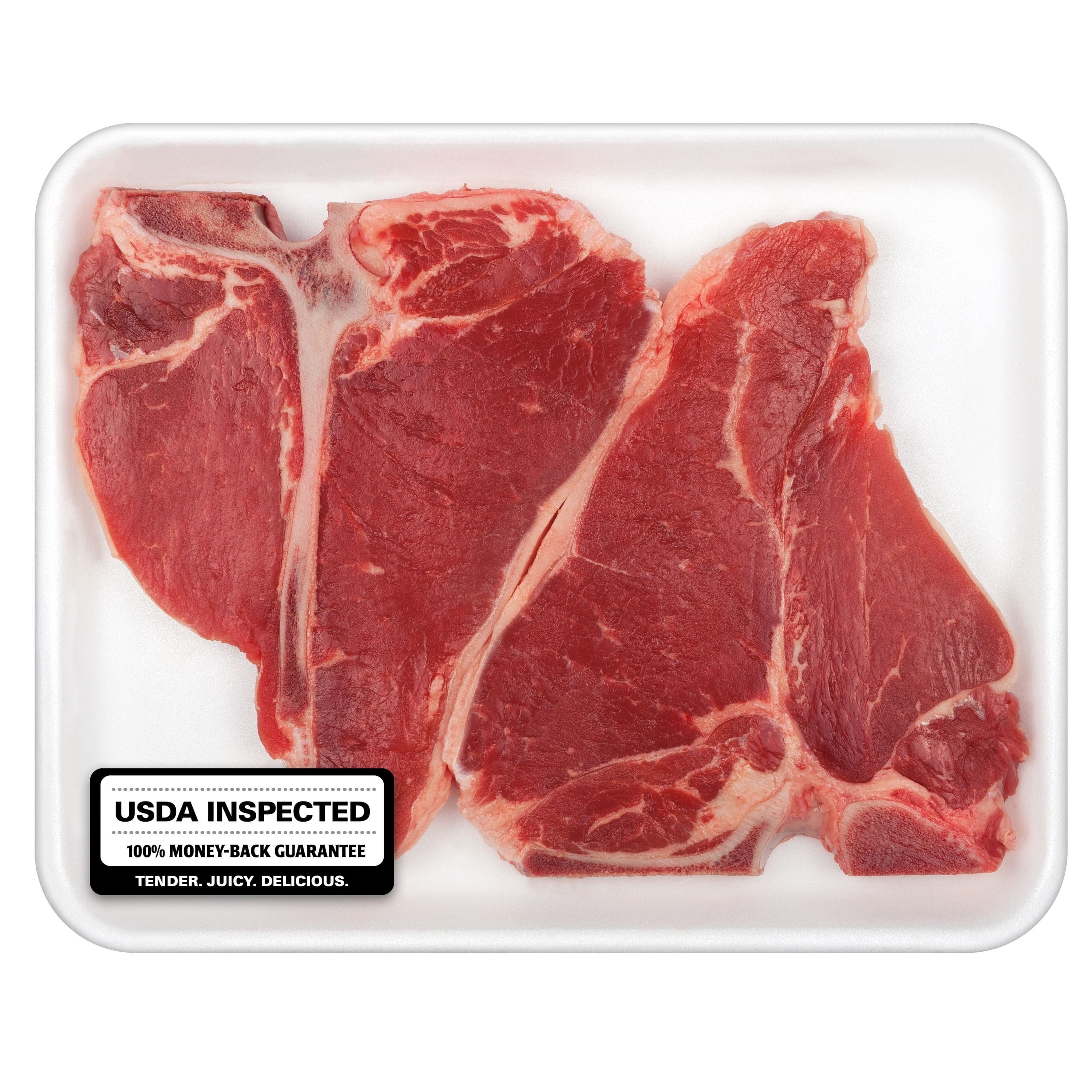 The T-Bone is one of the most easily-identifiable steaks. It has a T-shaped bone running through it, making it easy to spot in our meat case. Beef industry data shows the T-Bone is growing in popularity. The T-Bone is cut from the short loin, and actually has two different steaks attached to the bone. On the long side is the strip. If you would ... bones and "T-Bones" ... part of rib bone. Usually cut ¾ to 1 inch in thickness. Pork : Loin : Sirloin Chops Cookery Method -Dry Cut from sirloin end of loin. Same muscle and bone structure as sirloin Roast, but cut into chops ¾ to 1 inch thick.