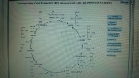 40 the image below shows the reactions of the citric acid cycle. label the enzymes on the diagram.