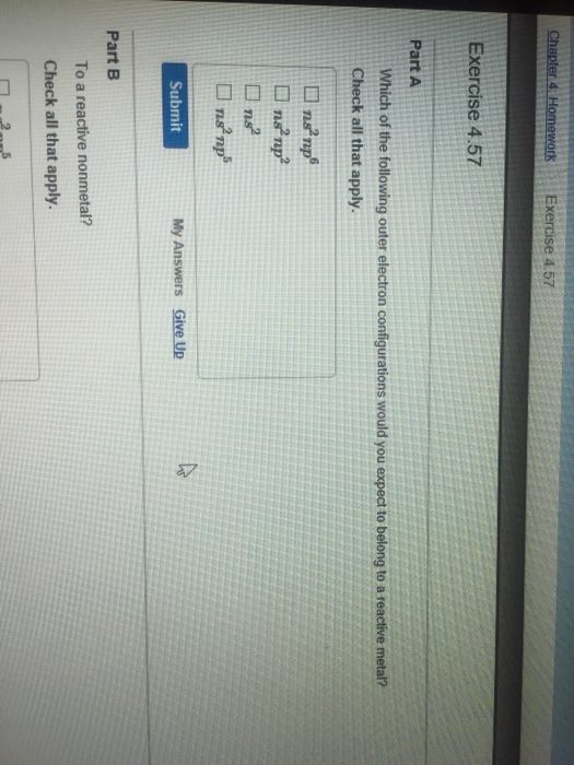 Which of the following outer electron configurations could belong to a noble gas?Check all that apply.a. ns2np5b.ns2c.ns2np6d.ns2np2 Q. Which element has the following configuration:[Xe]6s24f4 ? Enter the chemical symbol for the element. Q. What is the ground-state electron configuration of the sulfide ion S2-? ...