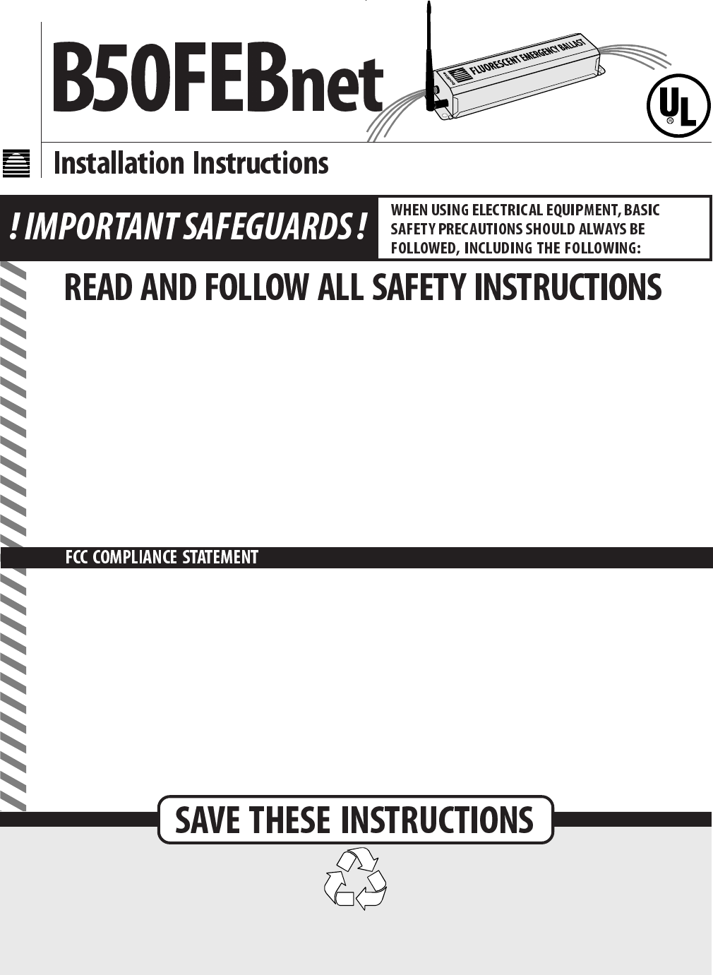 The B50-U emergency ballast works in conjunction with an AC ballast to convert new or existing fluorescent fixtures into emergency lighting. The emergency ballast handles a wide range of input voltages and frequencies and consists of a high-temperature nickel-cadmium battery, charger and electronic circuitry in one compact galvanized metal case.