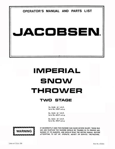Jacobsen Snow Blowers Information Guide - SnowBlowers.net Online comments run the gamut as far as issues with Jacobsen snow blowers-remember, these are likely at least 30 years old now. Below is a breakdown of different Jacobsen models and common parts requests or issues. Parts numbers are included where known: Imperial (Model #s 52610 (5hp), 52620 (7hp), and 52630 (9hp)